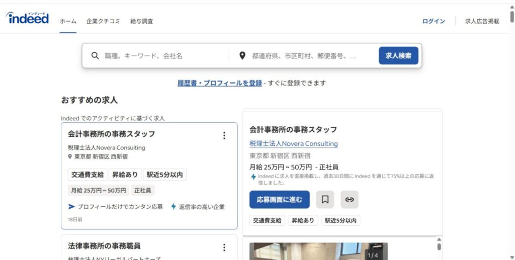 こちらも大手の求人サイトであるため、利用の心理的ハードルが低いメリットがあります。