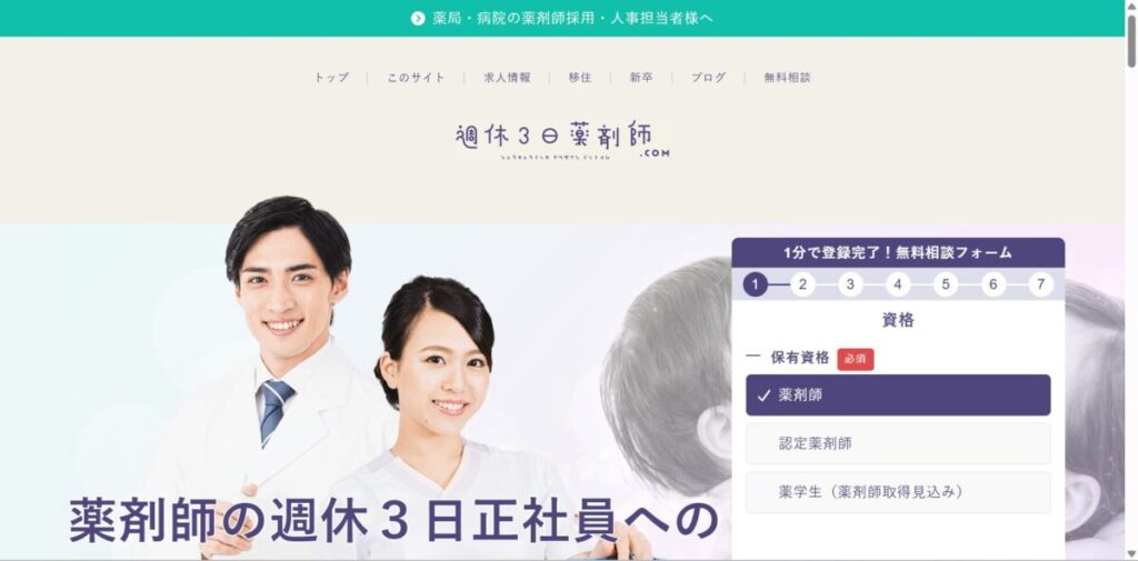 『週休3日薬剤師.com』も主に、『週休3日正社員の薬剤師の就職・転職を扱う転職エージェント』です。